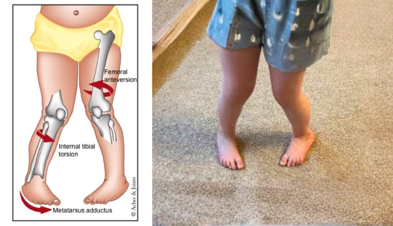 Although in-toeing is a common problem among children, very few require more than physical therapy intervention. Orthopedic conditions like metatarsus adductus and femoral anteversion can contribute to in-toeing. However, most in-toeing is often due to moderate strength deficits.